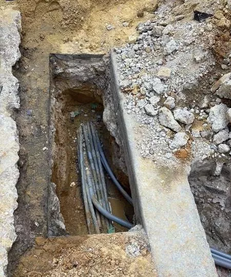 - Mise en place de protections de chantier, ouverture de la chaussée et du trottoir, dégagement de l’emprise jusqu’à l’infrastructure existante.